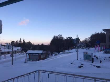おはようございます。修学旅行最終日の朝となりました。只今,朝食を取り,午前中のスキー講習の準備をします。今のところ予定通り進めていきます。怪我や体調の悪い生徒もなく,元気一杯で活動をしています。天候は晴れています。