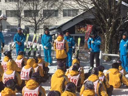 スキー講習の閉講式の様子です。修了証を受け取っています。