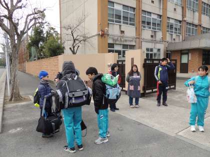 本日15日(木)6組が8時25分に花背山の家に向けて出発しました。1泊2日の学習会が充実した内容になるように頑張ってきてください。雪遊びや交流会など楽しい時間を過ごしてください。