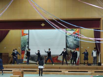 くす玉の準備も完了し,明日のリハーサルが行われました。吹奏楽部や生徒会本部役員が念入りに練習を行っていました。明日の送る会が全校生徒が全員で盛り上がるようにしましょう!