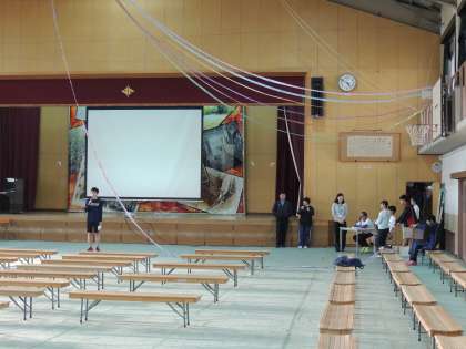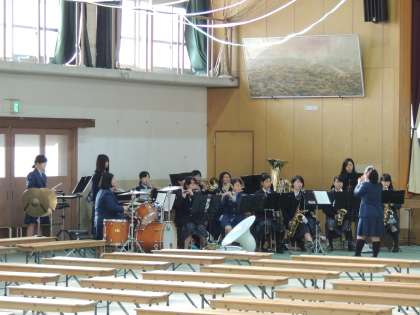 明日の「新入生歓迎会」に向けて,体育館ではリハーサルが行われていました。吹奏楽部や生徒会本部が一生懸命練習していました。思い出に残る会にしてください。