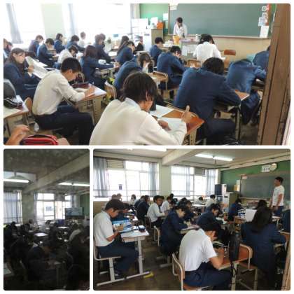 総括考査前で,時間を延長して各教室でテストに向けての学習を行っています。しっかり集中して学習してください!家庭での学習も計画を立てて,しっかり行ってください。特に,1年生は初めての総括考査です。頑張ってください!