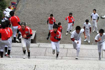 ストーブリーグに入った昨年度末、向島東中野球部と合同トレーニングを御陵で行った。230段の階段を使ってのかなりハードなトレーニングだ。この冬しっかり体を鍛えて、迎える春には大きく飛躍してほしい。おおいに期待しています。共に、頑張れ!