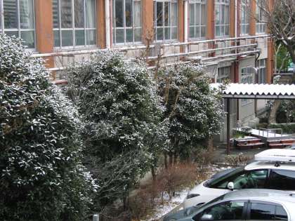 昨晩からの雪で本校でもうっすらと雪化粧が見られました。