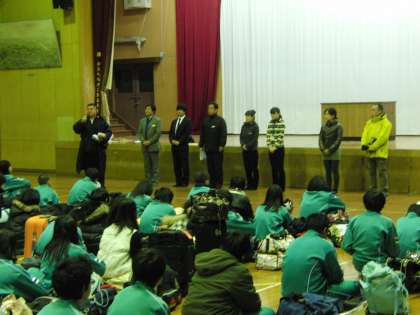 6時に全員集合し、結団式が行われたあと6:50に出発した。これから楽しみな2泊3日の旅が始まる。「輝く雪と輝く笑顔」このスローガンのもと、豊かな心や自主的な判断力・行動力をしっかり身に付けて来てほしい。
