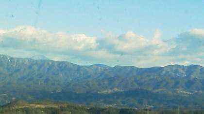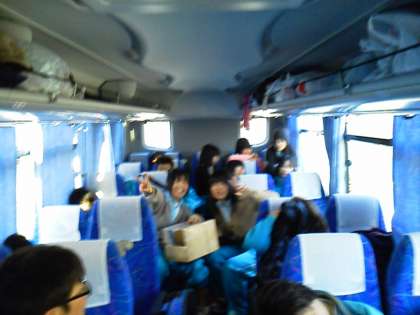 現在、中央高速道路を走行中。生徒も疲れているとおもいきやバスの中では、まだまだレクレーションに興じている元気な生徒たちです。窓の外はアルプス連山の山並みが雄大にそびえています。現在のところ、予定通り順調に学校に向かっています。