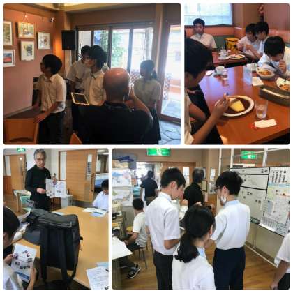 本日5日(水),6組は校外学習で「からしだね館」・「やましな学園」を訪れてきました。就労施設の見学を通して,将来の職業生活への興味関心につなげていってほしいと思います。見学では施設内で働いておられる方の仕事についてなど,案内いただきました。また,昼食は「オムライス」と「スパゲティ」のメニューの中から好きなのを選んでおいしくいただきました。生徒たちにとっては初めての就労施設の見学でしたが,本当に貴重な体験ができたと思います。
