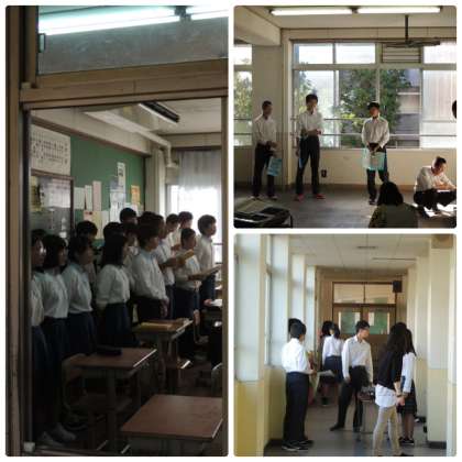 本日3日(水),朝から各教室から歌声が響き渡ってました。いよいよ明後日が本番です。残り少ない時間ですが,最後の最後まであきらめず,クラスの「絆」を大切に合唱してください。