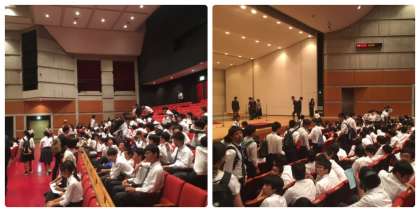 9時過ぎに学校を出発した生徒たちが呉竹文化ホールに到着したようです。10:30開演です。多くの方のご来場をお待ちしております。写真も随時アップしていく予定です。時折覗いていただければと思います。
