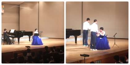 今年は特別講演として,青野浩美さんに来場いただき,講演および歌を聴かせていただきました。「前例がないなら私が前例を作る」との言葉が心に残ります。事前学習で学んだ手話を使いながら,全校での合唱も行いました。青野さんがどのような話をされたのか,生徒たちがどんな感想をもったのかとても気になります。ご家庭でも話題にしていただけるとうれしいです。