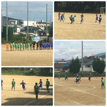 14日(日)附属桃山中学校におきまして新人戦予選リーグの最終戦が行われました。対戦相手は烏丸中学校でした。前半から積極的に攻撃し,10−1で快勝しました。残念ながら2次戦には進出できませんが,最後までしっかりとがんばる姿勢を貫いてくれました。次回の大会では上位進出目指して頑張ってください!