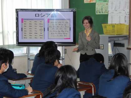 2年では、イタリア・ロシアの留学生を迎えて、国際理解教育が行われた。4時間扱いの中の2時間目の授業で、文化交流を通して互いの文化を大切にしていくことや、その中から共に生きていくことについて考えました。