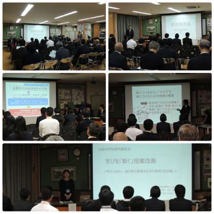 公開授業の後,研究報告会を会議室で開催いたしました。研究テーマである「学びに向かい,自ら考え表現する力の育成〜タテ持ち形態による授業実践を通して〜」のもと,半年間の取組を発表させていただきました。また,京都市総合教育センターの主任指導主事からもご講演いただきました。様々な角度からご助言をいただきました。本当にありがとうございました。