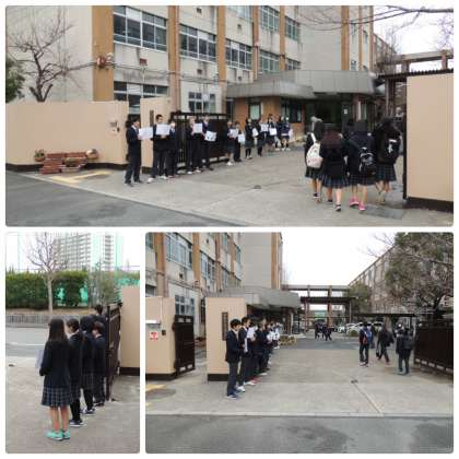 本日10日(木)は生徒十訓の日で,10日(木)から18日(金)までの期間,生徒十訓の意識の向上を目指した取組を各委員会が行っていきます。そのための呼びかけを生徒会本部役員中心にが朝からやってくれていました。寒い中,本当にありがとうございます。内容は「授業を大切にします」を中心としたものです。全校生徒,みんなで意識していきましょう!