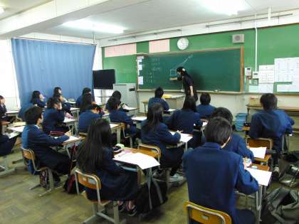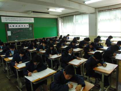 オリエンテーションや学活などの学級開き経て、今日最初の授業が行われた。1年は、ジョイントプログラムによる小学校で学習した内容の復習テスト、2年は、春休みに出された宿題の課題テスト、3年生は通常の教科授業からのスタートだった。どのクラスも緊張気味でかつ静かな雰囲気の中での始まりであった。この1年間全学年、学習意欲の感じることのできる授業を目指してほしい。