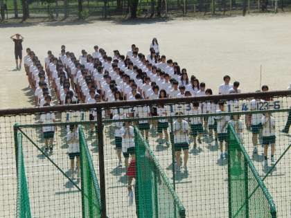 今日の3・4限、体育大会に向けた学年練習が1年で行われた。真夏を思わすほどの暑い中で、一生懸命先生の指示を聞いて取組んでいた。