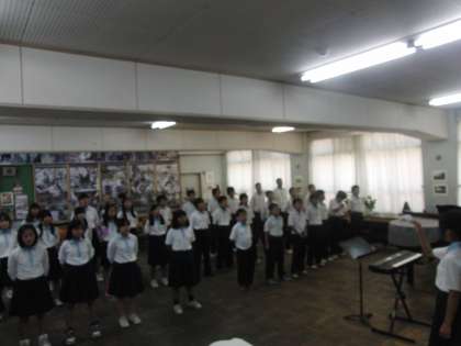 1年音楽コンクールの練習風景を掲載しました。今日は第1音楽室での練習でした。ぎこちないながらも懸命さが伝わってきます。