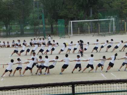 3・4限に3年学年練習が行われた。行進練習の後、学年種目である綱引きの段取りを練習した。今日の練習では1組の勝率が良かったとか?本番はどうなるのでしょうか。
