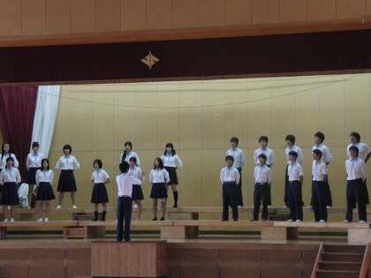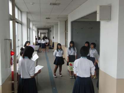音楽コンクールに向けて練習が始まり、1週間が経とうとしている。今日は3年の練習風景を掲載した。割り当てられている体育館や教室前廊下など様々な場所で練習を続けている。最後の音楽コンクール。最上級生としての音楽コンクール。「さすが3年生やな」といわれる合唱、期待しています。いや、「さすが3年やな」という取組む姿勢を見せてほしい。