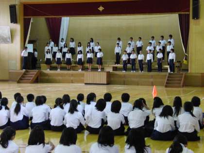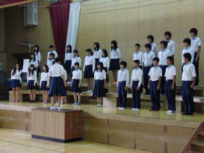1・2年の音楽コンクールリハーサルの1回目が行われた。1・2年とも姿勢などはしっかりできているとの評価だった。合唱では、2年は現時点においてどんぐりの背比べらしい。これからの取組む意欲や姿勢で勝敗が分かれそうだ。1年生は初めての取組とも会ってまだまだ声が小さいらしい。1年らしい元気な声が本番で聞けるといいのだが。