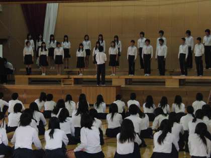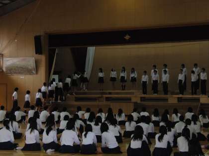 3年の音楽コンクールリハーサルの1回目が行われた。まだまだ3年としては不十分なできだが、これからどこまで仕上げてくるかが楽しみである。とりわけ声がまだまだ小さい。声が出るか否かが金賞への近道かも?