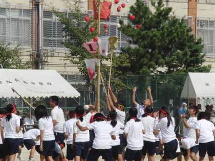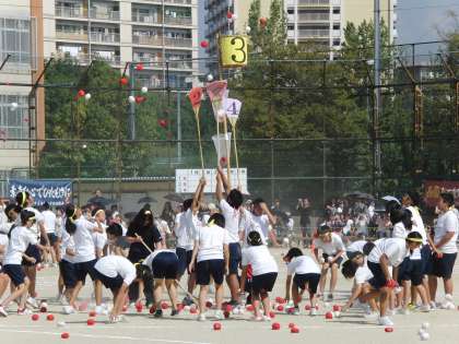 1年バトル玉入れが終了しました。1位4組・2位1組でした。