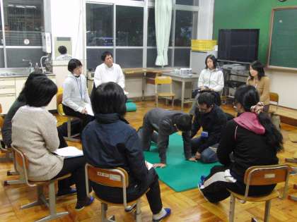 育成学級において研究授業と協議が行われた。肢体育成学級の生徒に対する自立の時間の授業のあり方について、遅くまで熱心に協議が続けられた。