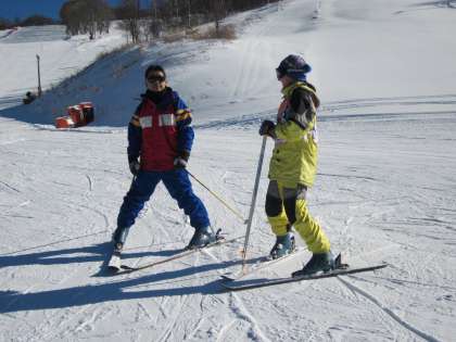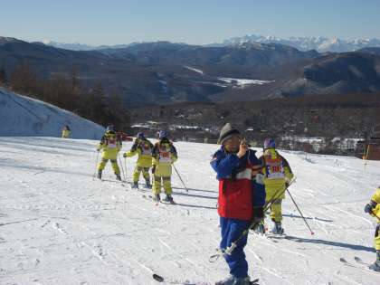 午後になると一番頂上から滑走してくるグループもあり、さらに上達してきました。氷点下ですが、汗ばむ講習の様子です。