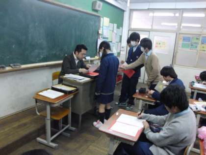 今日3年では、公立一般の願書の書き方の指導が行われていた。私学の出願・公立特色、推薦の出願が終了し、息つぐ間もなく次の出願に備えなければならない。生徒も先生もなかなか大変だ。来週には、私学入試。翌週には公立推薦特色入試。いよいよ本番が近い。今一番大切なのは体調管理かもしれない。寒さに負けず、インフル・風邪にも負けず、そして己に負けず、頑張ってほしい。