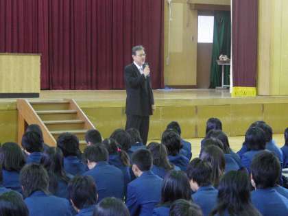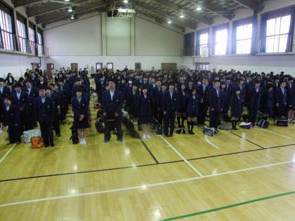 着任式に引き続き始業式が行われた。なによりもうれしいことは、みんなの元気な顔が見られたことだ。教職員共々、はじめの大きな一歩を踏み出しましょう。
