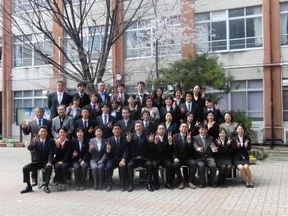 新しい教職員です。今年度もよろしくお願いします。「チーム向島」として全職員で感動溢れる学校づくりに誠心誠意がんばる所存です。よろしくお願いします。