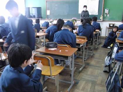 どの学年もそうだが、今まさに1年間を見通した学級作りに奮闘中です。ものを大切にするために机や椅子に名前を張ったり、班の組織を考えたり、規則やルールの確認、中学校での授業についてなどなどどのクラスも必死です。1年間かけてすべての人が主人公となれる学級を築いてください。