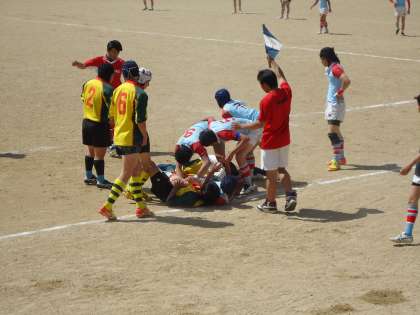 ラグビー部は、大会期間が長いため、開会式に先駆け、大会が行われている。今年度ラグビー部は、部員が少ないため合同チーム(長岡第二、洛西、七条、花園、向島)として、大会に参加している。21日、28日の試合で、1勝1敗となり、決勝トーナメントに進出が決定した。決勝トーナメント1回戦は、5日13時より、吉祥院グランドにて行われる。