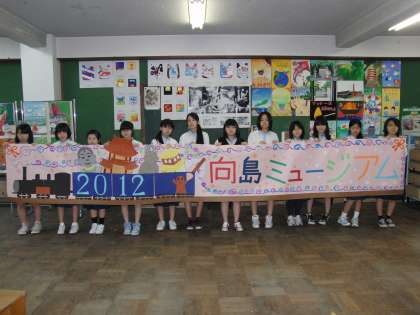 総合的な学習の発表会「向島ミュージアム学習発表会」が木曜日に行われます。それに向けて、美術部では、看板を制作しました。普段の時間ではなかなか間に合わず、土曜日の朝早くから活動し、完成しました。立派な看板ありがとう。