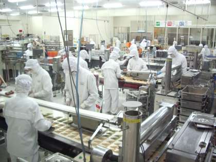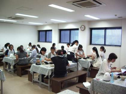 13日(木)午前9時より、第1回PTA文化教室として(株)「おたべ」本社工場に行きました。現地では、「八つ橋」の製造ライン見学と、「おたべ」の製造体験にチャレンジしました。体験では、インストラクターのかたの説明にそって「米粉」を練り、各自がそれぞれ3個のおたべを作りました。そして抹茶とともに試食しました。とても楽しい体験ができました。