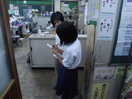 体育大会・音楽コンクールに向け、担任の先生の意気込みを生徒会が放課後取材していた。「記録よりも記憶に残る体育大会を目指す」という回答が聞こえてきました。どこかで聞いたことのあるような・・・・。生徒の心にも、職員の心にも意欲が見えるさわやかな光景でした。さあ、みんなで頑張ろう!生徒会の皆さん、新聞の発行楽しみにしてますよ。
