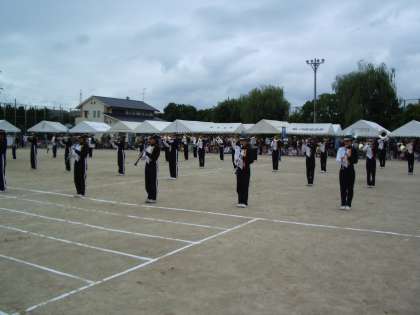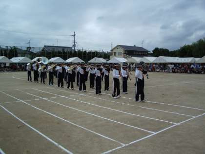 23日(日)天候の回復を待って午前11時から向島南学区の区民運動会が行われました。開会にあたっての挨拶、準備体操の後、本校の吹奏楽部がマーチングを披露しました。競技とともに「毎年これを見るのが楽しみ」というお声をいただきました。
