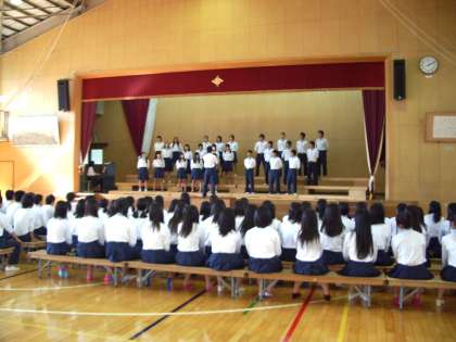 音楽コンクールを2日後にひかえ、各学年でリハーサルの2回目が行われました。司会者の進行にそって、発表順にクラスの曲を歌いました。今日は午後から2年生と3年生のリハーサルがありました。