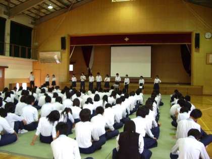 10日(水)6限、3年生は学年集会を行いました。今までの大きな行事をふり返り、クラス・学年が団結して成功できた成果を発表するとともに、これからの進路への目標実現に向けて、気持ちを引き締めていくことの必要性をみんなで確認しました。