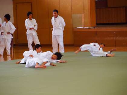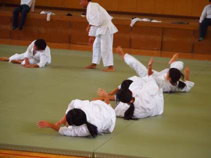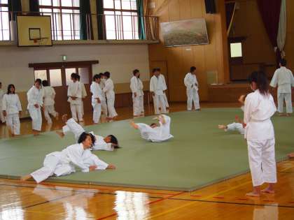 体育の授業では、柔道が行われている。今日の授業では、「受け身」の指導が行われていた。身体的なダメージを軽減するための防御の姿勢・動作の習得であり、柔道を学ぶ上で、基本的な練習だ。なかなかうまくできず、四苦八苦しているようだ。