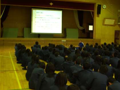 6日(火)の6限、2年生は翌日からの「チャレンジ体験(職場体験)」へ向けて学年集会を行いました。チャレンジ体験を行う上で守るべきことを確認するとともに、校長先生からも激励のことばをいただきました。この職場体験を通して、単に「しごと」を体験するというだけではなく、プロとして働いておられる人たちの「仕事にかける思い」にもふれ、たくさんのことを学んで来てほしいと思います。