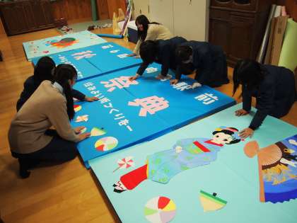 地域行事の「秋の祭典」が11日行われる。その祭典の看板制作の依頼を受け、美術部が奮闘中です。昨年度の看板もきれいだったけど、今年の看板も古都と秋がイメージできる素敵な看板になっています。完成が楽しみです。美術部の皆さん、ありがとう!