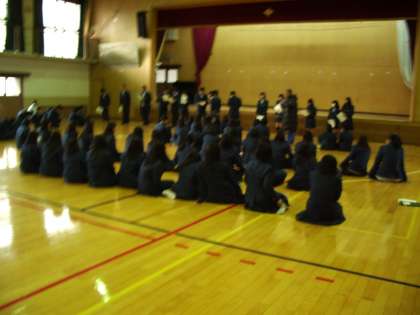 18日(金)の6限、2年生は修学旅行へ向けての学年集会を行いました。スキーの講習班の発表に続いて、集団行動の練習を行いました。当日身につけるゼッケンも届きました。いよいよ準備は最終段階に入りました。