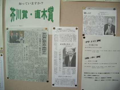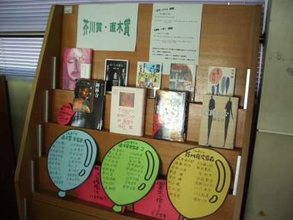 図書館に芥川賞・直木賞コーナーが設置されています。今回は京都を仕事場にされている安部龍太郎さんも受賞されました。過去の受賞者の著書を中心に配架されています。