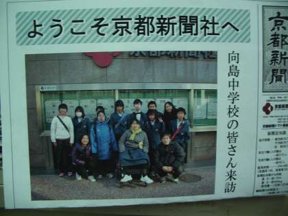 25日(金)に、6組は京都新聞社を見学し、編集局や輪転工場など、新聞づくりの現場を熱心に見て回りました。翌日の新聞には記念の写真が掲載されました。