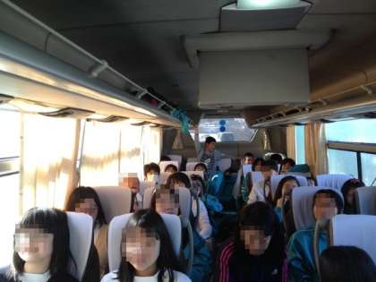 11時00分、梓川サービスエリアに到着しました。間もなく高速道を下りて一般道に入ります。北アルプスの山々が目前に迫っています。バス内はカラオケで盛り上がっています。