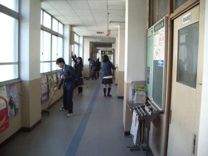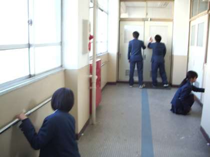 卒業式練習の後、3年生は校内の美化活動に取り組みました。感謝の気持ちをこめて、校舎の隅々まで清掃をしました。エアコンのフィルターも洗いました。