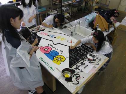 家庭訪問週間が始まるとともに、放課後の時間を活用して、全学年一斉に学級旗の製作に取り組みました。学級のテーマとなる言葉や図案が描かれ、それぞれの学級の個性が見られます。明日一日で全学年の学級旗が完成となります。全クラスの学級旗の仕上がりが楽しみです。