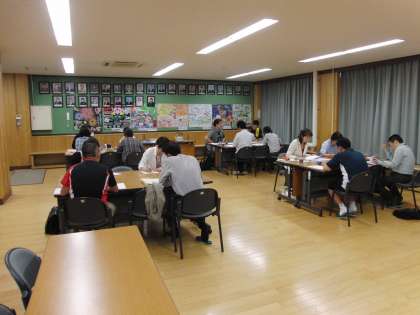 21日(火)放課後、校区内3小学校と本校の各分掌主任の先生が集まり、主任研修会を行いました。今年度も小学校と中学校の連携を図り、これからの取り組みについて活発に意見を交換しあいました。