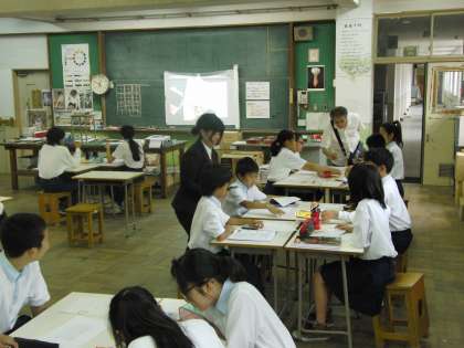 大学の先生も来られ、教育実習の研究授業が行われた。2時間目1年3組美術の授業の様子です。大変緊張するだろうなと思いきや、そんな素振りもなく、授業が進められていました。